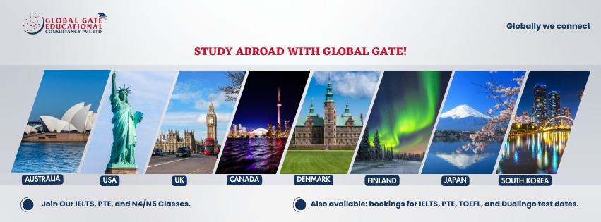 Global Gate is a registered company under Nepal Government’s Company act with the sole objective to cater almost all the services required for study abroad, under one roof. We are very proud of our strength and experience, which enables us to provide genuine counseling, admission to the reputed universities and colleges of your desired country and also complete and hassle free visa processing assistance along with various test preparation classes. In addition, we offer a product called Mero Test, Nepal's first online test date booking platform. It allows students to schedule tests like IELTS, PTE, TOEFL, and GRE. Users can quickly download and print the results.