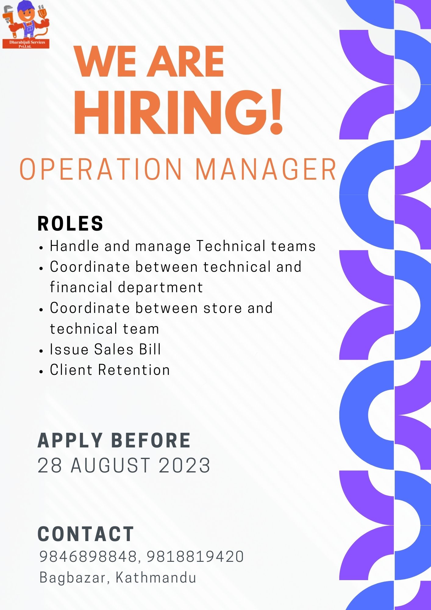 Dharabijuli Services Pvt Ltd was founded in 2019 and registered with the Company Registrar of Nepal.We are a team of dedicated engineers, interior designers and technical professionals with several years of industry experience committed to provide you with the best service.