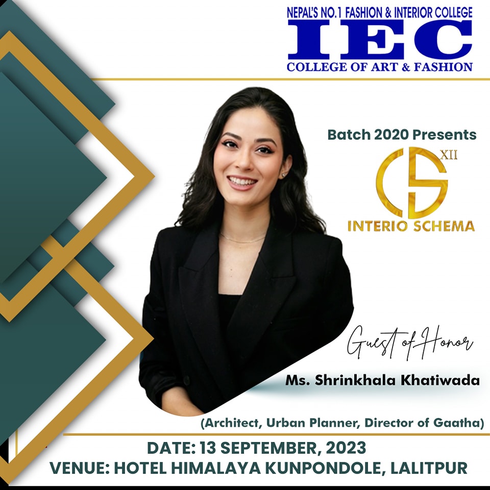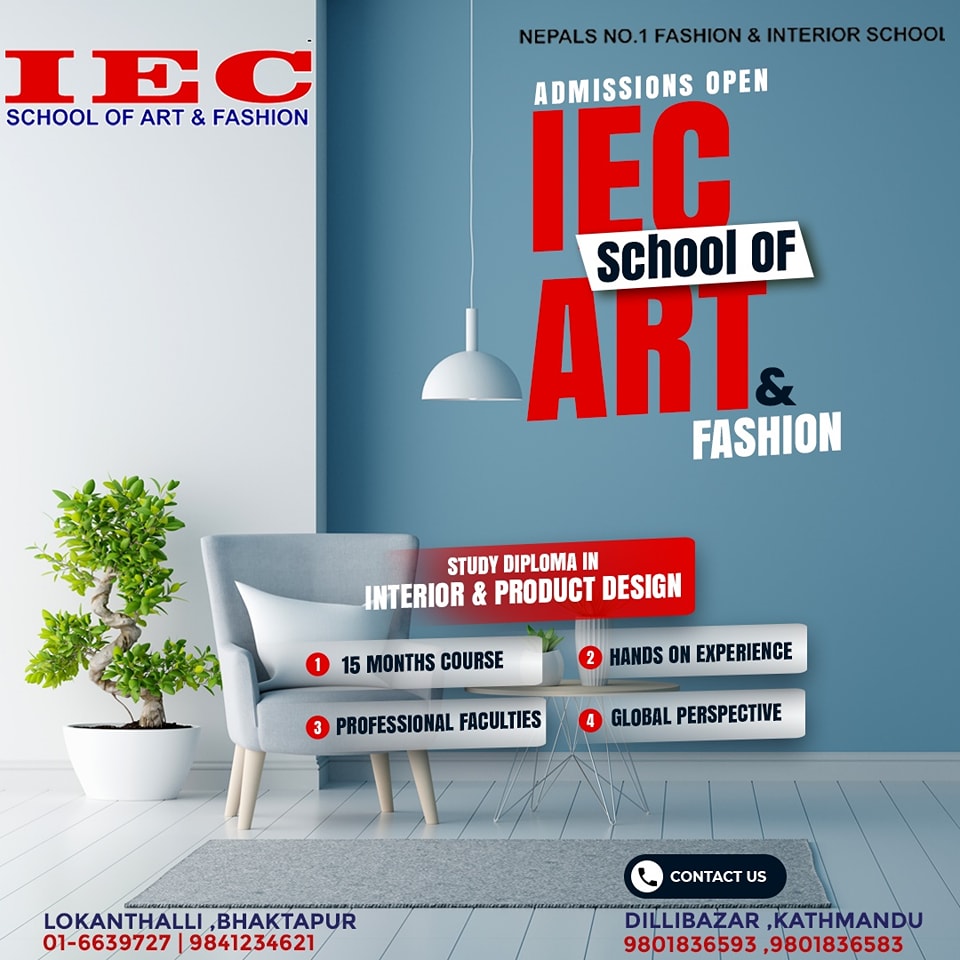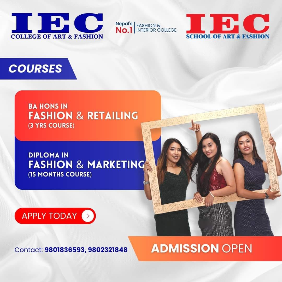 IEC School of Art and Fashion is a multifaceted an ISO 9001 certified school. IEC (Kathmandu) branch has received the INTERNATIONAL GOLD AWARD 2003 (USA) for Quality Education and TQM. It had experienced a growth of 600% in the last 6 years and has best of the infrastructure and educational resources. It is also the promoter and organizer of Nepal Fashion Week, which is the biggest fashion extravaganza in Nepal held every year in Kathmandu.