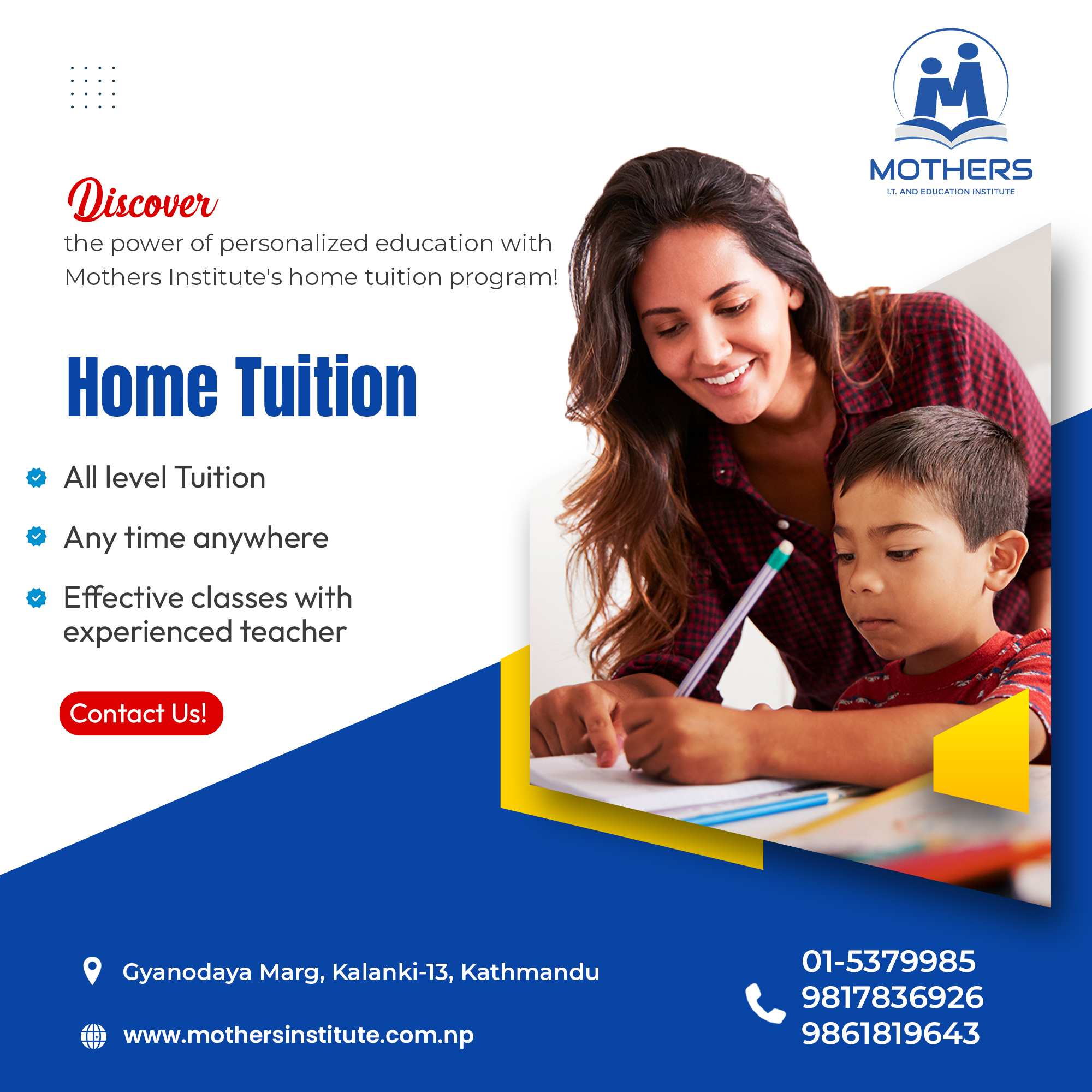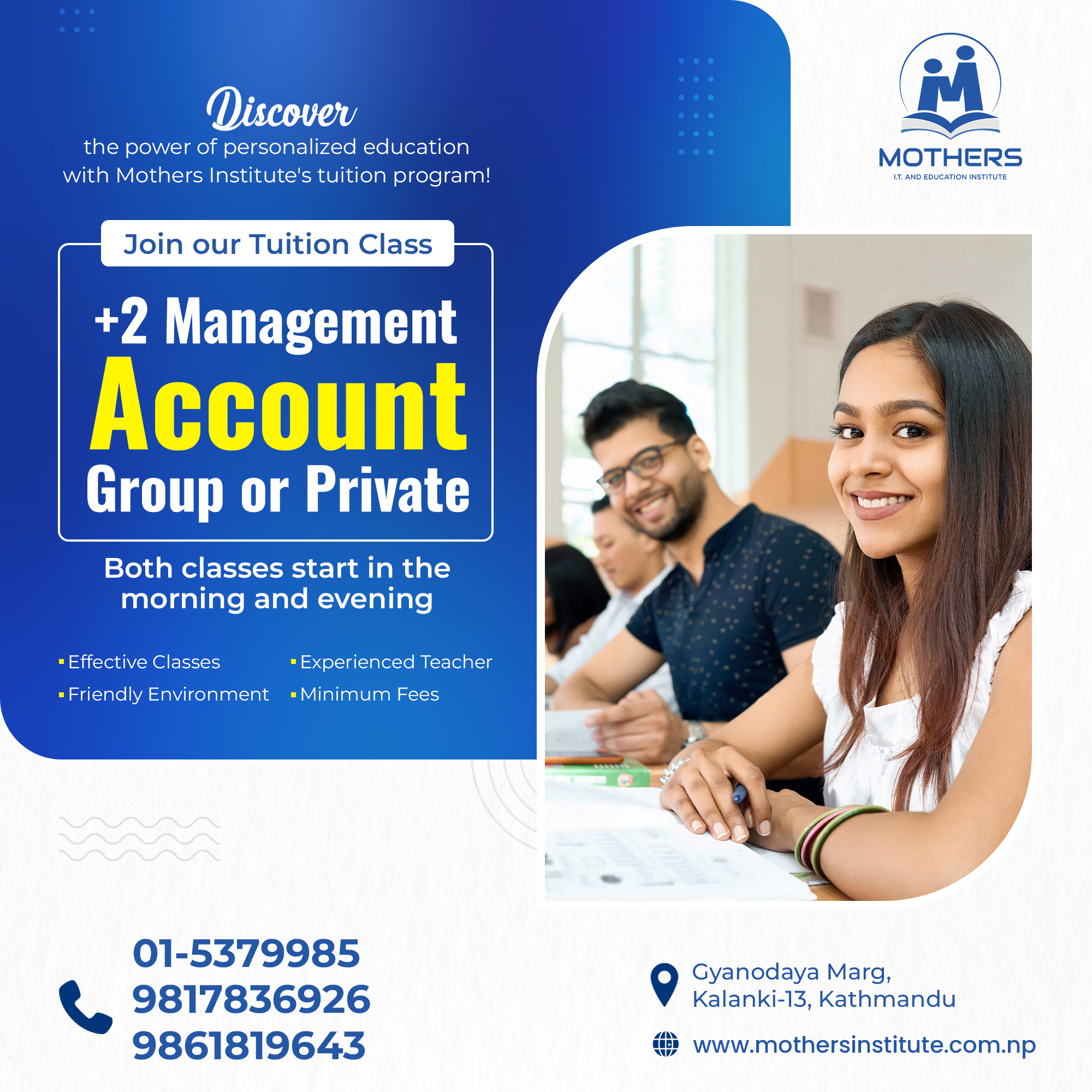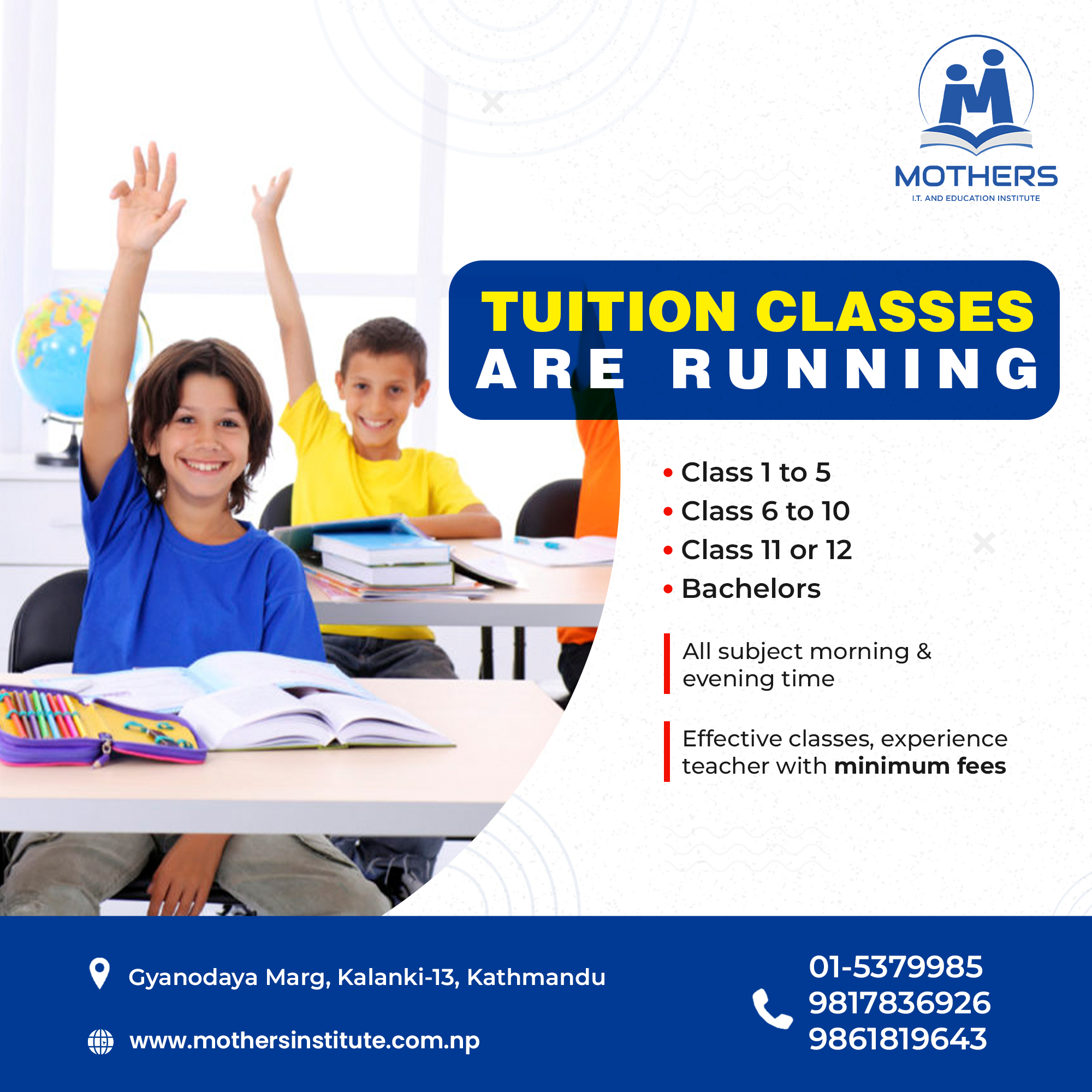 Mother Institute Nepal is one of the best inclusive computer training institutes in Kathmandu, Nepal. Established in 2019, our professional training and Development center has been employing experts in this field to impart professional education to trainees. We offer well-structured complete professional training in various basic and advanced courses, Graphics & Multimedia, Web Designing as well as language classes that is based upon the current recruitment needs in the IT market.